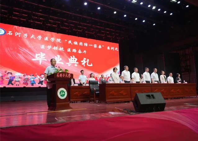 石河子大学党委常委、副校长,医学院党委书记吴向未、石河子大学第一附属医院院长徐江、石河子大学研究生院副院长李新芝、医学院院长马克涛及全体院领导、各系办主任、辅导员、班主任出席了此次典礼。此次典礼由医学院党委副书记于磊主持。