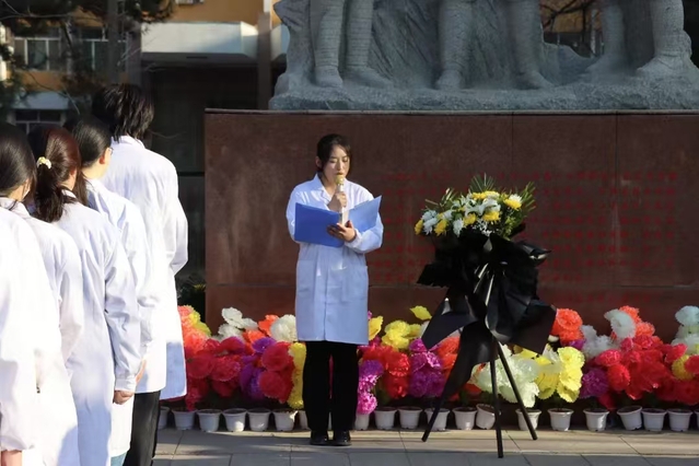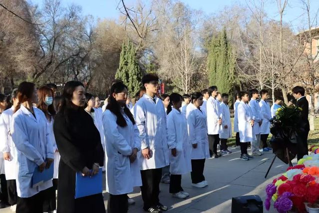为深切缅怀革命先烈,赓续红色血脉,引导广大团员青年深入学习革命先辈的光辉事迹,厚植家国情怀,强化历史使命感,培育新时代爱国主义精神。4月4日上午,医学院、药学院、护士学校于南区王震将军塑像前开展了“青春奋进,薪火相传”清明祭英烈主题活动,共计110名团学骨干参加此次活动。