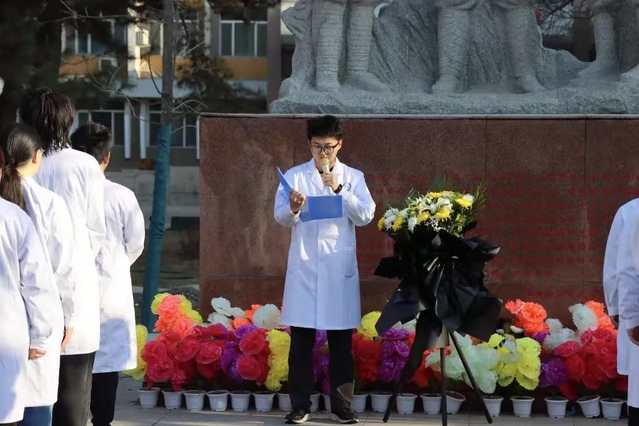 田凯超作医学院学生代表发言。他给同学们介绍了一批批为实现民族独立、人民解放,国家富强、人民幸福而献出生命烈士的事迹,并呼吁同学们要继承英烈们的奋斗精神,面对困难和挑战,要有不屈不挠的斗志,不断追求卓越,为国家的繁荣昌盛而努力。