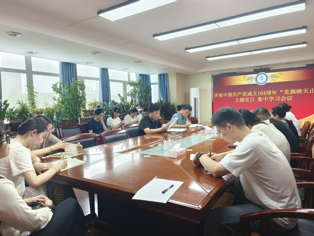 为庆祝中国共产党成立104周年,深化党建与业务融合,6月24日下午,石河子大学计财处党支部与医学院机关第一、第二党支部携手开展““党建赋能财务服务提质增效””暨““党旗映天山””主题党日。活动以““理论学习+实践教育+业务赋能””为主线分三阶段进行。医学院党委书记张青、计财处副处长路国栋党委副书记雷建鹏、计财处副处长路国栋和三个支部全体党员参加活动。活动由医学院党委副书记雷建鹏主持。