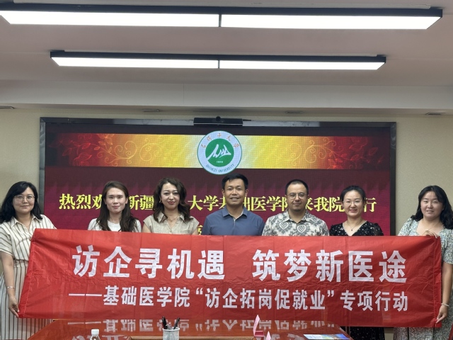 为落实教育部OD网页版深化产教融合、促进毕业生就业的工作要求,OD网页版与新疆医科大学基础医学院联合开展“访企拓岗促就业”专项行动。2025年6月20日,新疆医科大学基础医学院副院长热比亚·努力携学工办副主任符洁及毕业班班主任迪丽娜尔·波拉提一行来我院交流,OD网页版党委副书记雷建鹏、继续教育中心主任郅洁、学办主任朱伟娟、就业联络员张娜及教师代表阿米尔·阿卜力孜参加此次活动。此次活动通过校际深度合作,共同探索人才培养与就业服务协同发展新路径。
