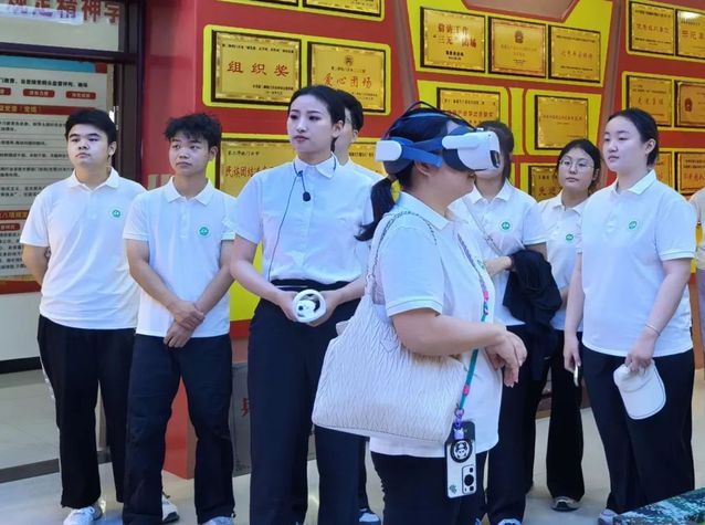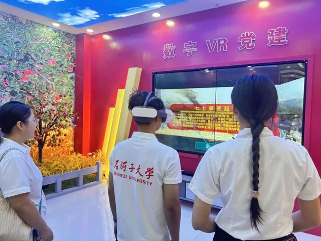 随后,师生们体验了团史馆引入的数字VR党建系统。戴上VR设备,大家“穿越”到井冈山革命根据地、延安窑洞等红色场景,在虚拟环境中聆听革命故事、参与互动教学,让党史学习教育从“静态观看”变为“动态参与”。