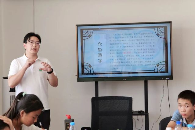 随后,小老师展示了汉字从甲骨文、金文、小篆、隶书到楷书、行书、草书的演变过程,并以“日”“月”“山”“水”“火”等字为例,清晰呈现了不同字体的形态变化,展现了汉字在历史长河中不断发展完善的轨迹。