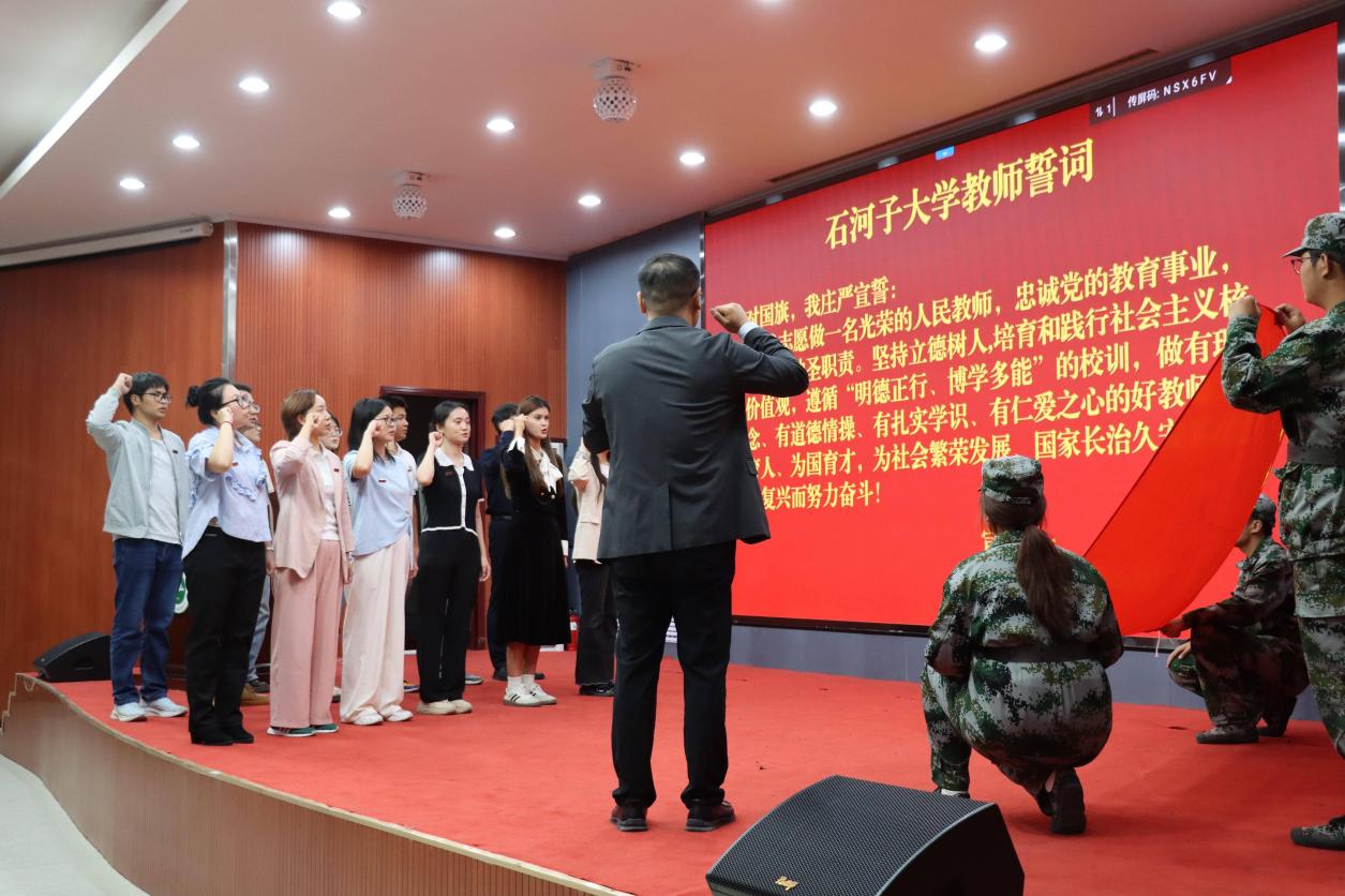 第一环节“新鲜血液,赓续传承”的新进教师见面会伊始,15名新教师们在马克涛院长的介绍下依次上台与大家见面,吴甜博士作为新进教师代表进行发言,她表达了对加入医学院大家庭的期待,言语间充满了对未来教育工作的憧憬。随后,学院领导为新进教师佩戴校牌,这一简单而庄重的仪式,象征着新教师正式融入OD网页版这个大家庭。在马克涛院长的带领下,新进教师们庄严宣誓,承诺将秉持教育初心,为医学教育事业贡献力量。