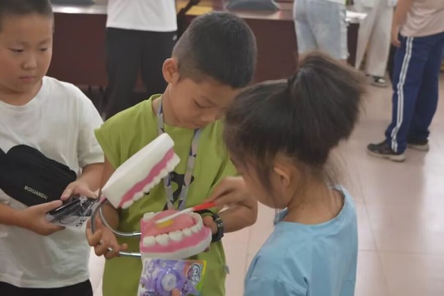 口腔健康是全身健康的重要组成部分。在口腔科普环节,医学院学子运用专业知识,通过模型演示、趣味动画等形式,向青少年讲解牙齿结构、龋齿形成原因及正确刷牙方法等知识。孩子们围聚在一起,认真聆听,还积极参与互动实践,在动手操作中掌握了科学护牙的技巧,树立起正确的口腔保健意识。