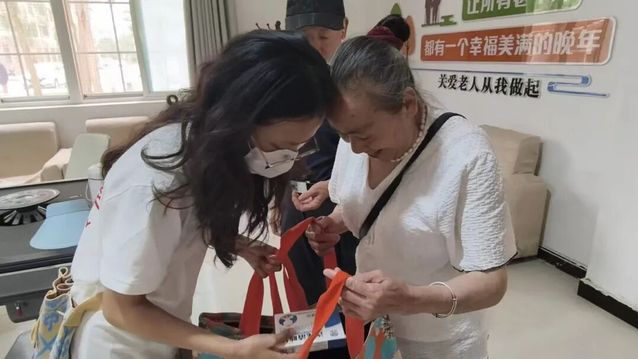 针对老人颈肩腰腿痛、失眠等慢性病困扰,医学院学子跟随医院中医科医生艾乐松,带着针灸针、耳穴贴等器械,为老人开展特色诊疗。他们在旁仔细记录操作要点、学习辩证思路,将理论知识融入实践服务。