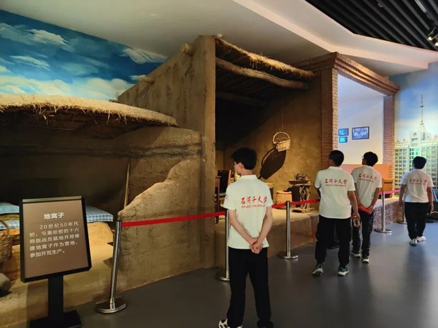 踏入博物馆,队员们立刻被馆内浓厚的历史氛围所感染。在讲解员的带领下,大家依次参观了各个展厅。一件件珍贵的文物、一幅幅泛黄的照片、一段段感人的故事,生动再现了兵团人从解放战争时期的金戈铁马,到屯垦戍边时期的艰苦创业,再到新时代开拓进取的奋斗历程。看到那些在艰苦环境下使用的劳动工具、破旧衣物,以及记录着先辈们战斗与建设场景的资料,团队成员们深刻体会到了老一辈兵团人“热爱祖国、无私奉献、艰苦创业、开拓进取”的伟大精神。