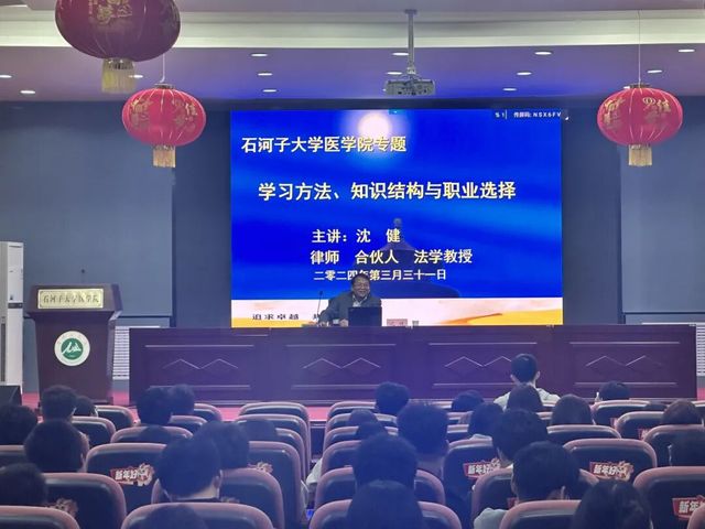校友榜样示范,助力学生成长成才。为深入学习贯彻党的二十大精神,扎实推进“三全育人”工作,进一步提升人才培养质量,3月31日,医学院“校友领航·共话成长”校友讲座在南区学术报告厅顺利开讲。讲座由医学院1984级校友沈健主讲,学院师生代表200余人参加讲座。讲座前,学院老师与校友进行亲切交流,对校友来校讲座表示欢迎。