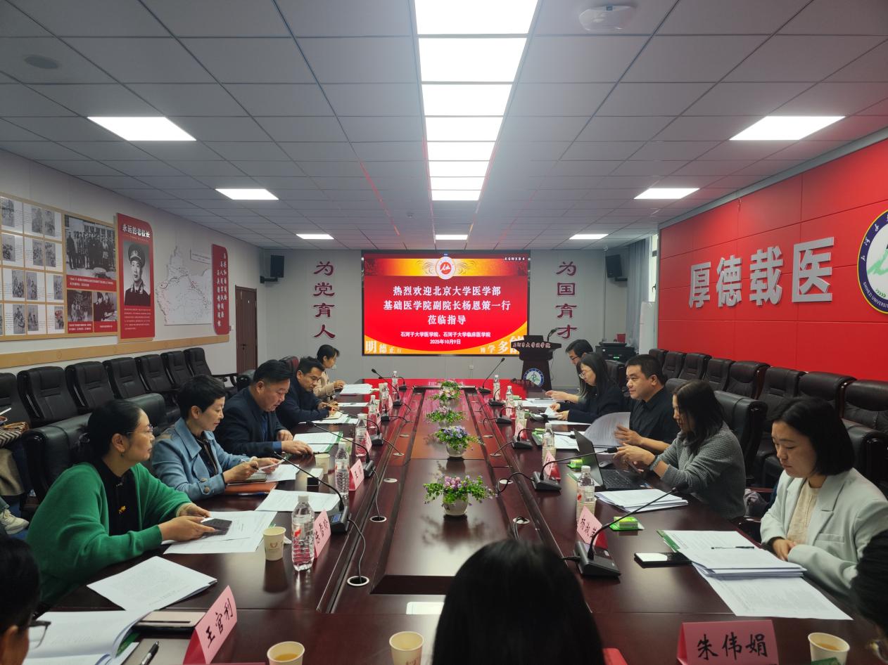 2025年10月9日,北京大学医学部基础医学院副院长杨恩策一行到访石河子大学,围绕人才培养方案、联合培养研究生、本科生暑期研学班等开展指导交流。