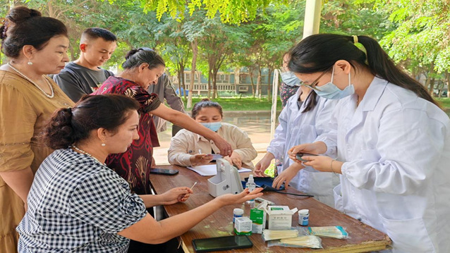 8月20日,医学院赴第三师图木舒克市“心糖共管”科普服务践行团的16名师生,共同深入图木舒克市美丽社区与幸福社区,开展“三下乡”社会实践活动。本次行动紧密结合社区需求,聚焦三十五岁以上居民的高血压、糖尿病筛查,通过专业化的健康筛查工具和生动的科普宣教形式,累计完成高血压与糖尿病筛查七百余人次,有效提升了居民的健康意识和疾病防控能力。