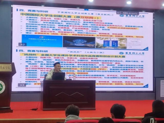 为进一步加强广大同学对“挑战杯”竞赛的认识,引导广大学子积极参与创新创业竞赛,10月19日20:30,医学院护理系团总支在南区学术报告厅举办了护理学专业,中医学专业及基础医学专业“挑战杯”经验分享会,由临床医学系2022级程韦铭师哥做经验分享,护理学专业、中医学专业及基础医学专业2024、2025级学生参与本次活动。