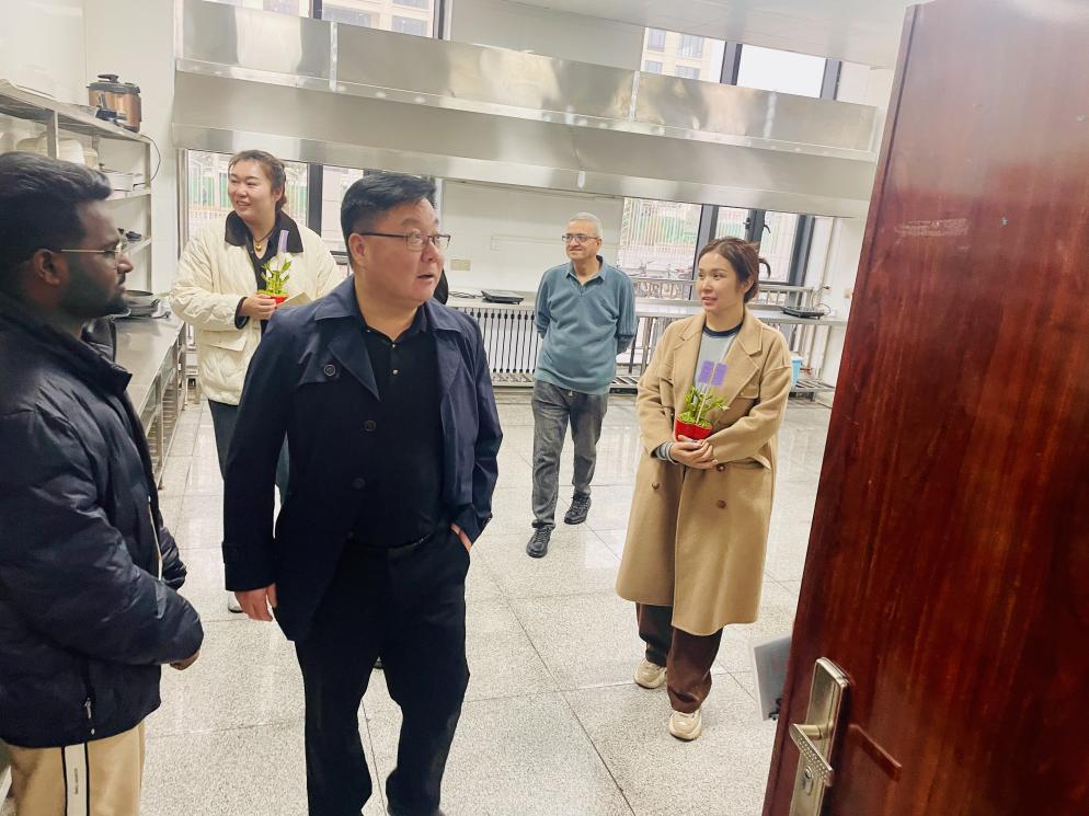 为进一步了解我院来华留学生学习生活及宿舍卫生安全,10月15日下午,党委书记张青、副院长孙玉梅带领留学生办公室工作人员,前往“一带一路”国际教育中心,深入留学生宿舍,实地了解留学生在宿舍的学习、生活等情况,为留学生送去关心和问候。