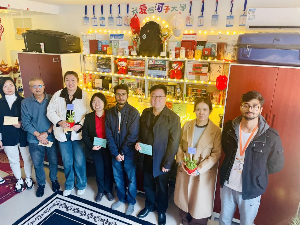 在与留学生们的亲切交谈中,张书记详细了解了同学们的生活学习情况、实际困难及需求。他特别关注了留学生们在学习上的挑战和语言学习上的进步。张书记勉励同学们要志存高远,脚踏实地,刻苦学习,合理规划,努力提高自身的学习能力和专业素质。张书记强调,留学生们应充分利用在华留学的机会,加强对汉语和中国文化的学习。他鼓励留学生们努力做中外文化交流的使者,通过自身的努力和学习,促进中外文化的交流与理解。
