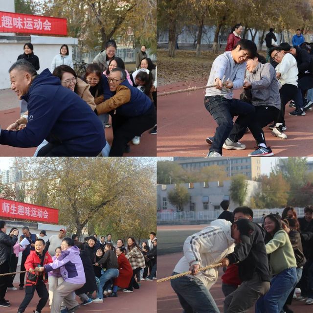 与此同时,8字跳绳项目中师生身姿轻盈,如游鱼穿梭,展现出良好的节奏感与团队配合;踩板子过河则考验选手的平衡与策略,两人一组的趣味协作引发阵阵欢笑;抢凳子项目在紧张欢快的音乐中进行,师生们反应敏捷、你争我抢,现场充满轻松活泼的竞技乐趣。