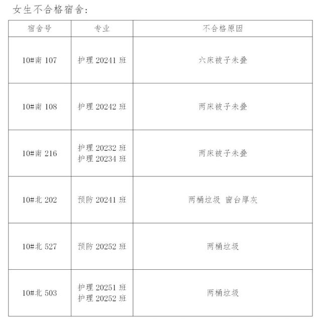 为进一步加强学生宿舍管理,营造更加安全、整洁的生活环境,医学院宿舍管理委员会于本周组织了细致周到的卫生检查工作。